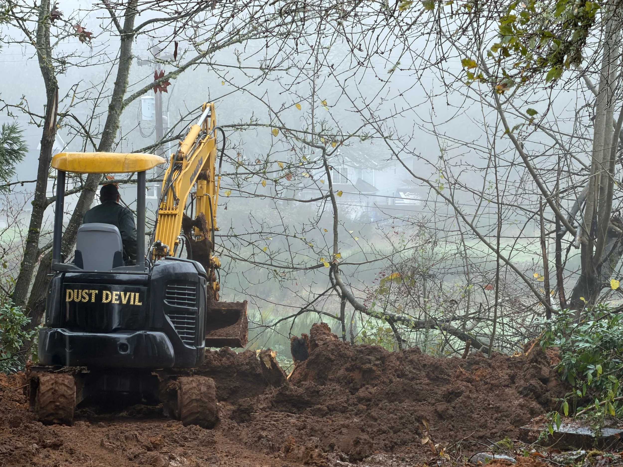 Excavation for septic tanks and drain fields. |